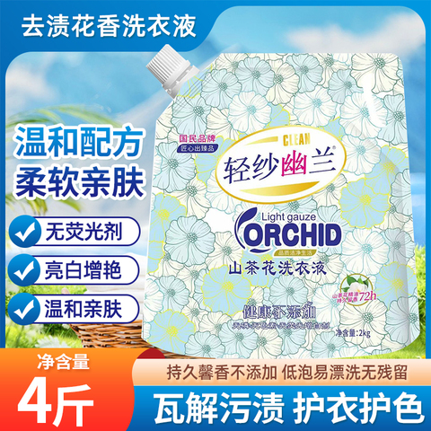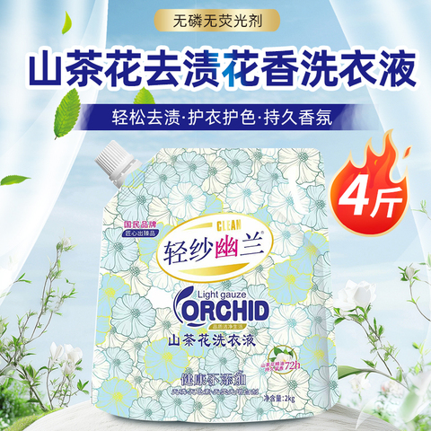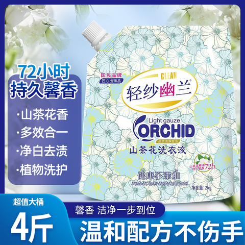 5.9元到手4斤!轻纱幽兰山茶花香洗衣液持久留香除菌内衣内裤专用深层洁净祛渍,健康不添加山茶花精油加倍馨香,持久馨香深度洁净,馨香洁净一步到位,温和配方不伤手,瓦解物资护衣护色!
