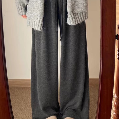 唐狮旗下DESSO秋冬新款糯米裤高腰垂感宽松加绒直筒阔腿裤