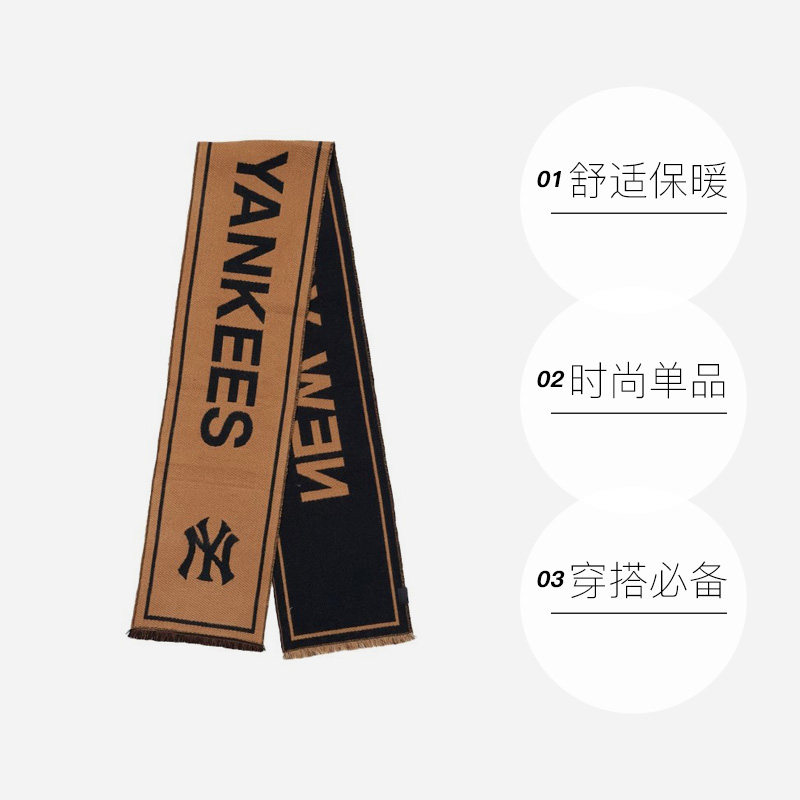 【自营】MLB男女情侣学院风字母logo休闲保暖围巾24秋季新款MFV01