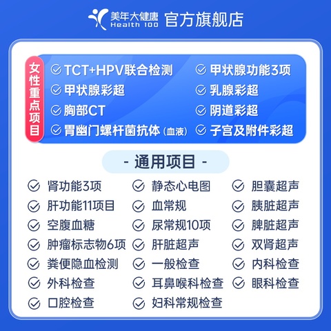 美年大健康旗舰店的粉红佳人套餐来啦,59TMMN00女士HPV体检套餐,妇科体检超全面。专业检测,放心又安心,给自己一个健康保障