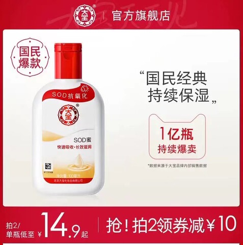 【粉丝福利】2瓶装100ml老牌子SOD蜜面霜滋润补水乳液秋冬保湿身 【售价】:¥19.90 【券后】:¥9.90 【优惠券】:¥10 推荐理由:大宝2瓶才9.9!3瓶12.9更划算【大宝擦脸擦身都可以,适合全肤质人群】国货之光!35年口碑之选!内含人参黄芪根中药提取物,有效滋润肌肤,打好抗氧基础,全身滋养好吸收,四季抗氧,肌肤嘭弹盈润,焕活年轻好 👉复制这条信息打开【手机淘宝APP】即可领券购买:/