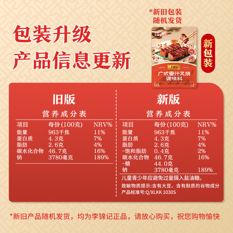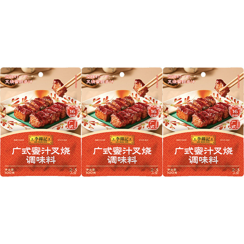 李锦记广式蜜汁叉烧100g*3调味料卤味酱料秘制广式烧烤料调味品