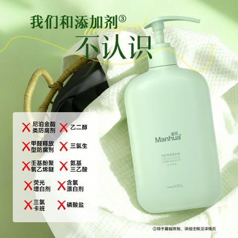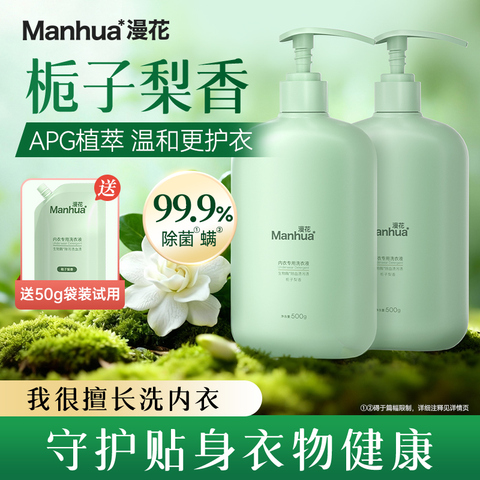 洗内衣别马虎!漫花500g内衣裤清洗液,生物酶强效去污,还能留香、除菌螨。温和配方护双手,快给私密衣物好呵护~