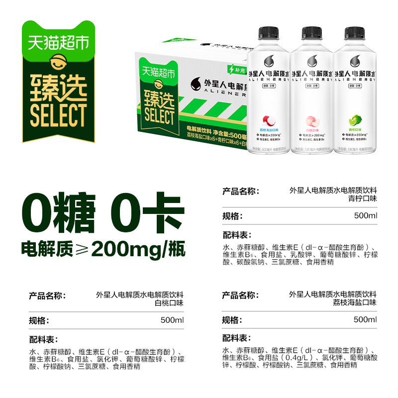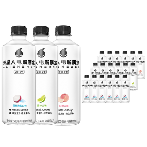 臻选 外星人电解质水青柠+荔枝海盐+白桃组合0糖0卡饮料整箱运动