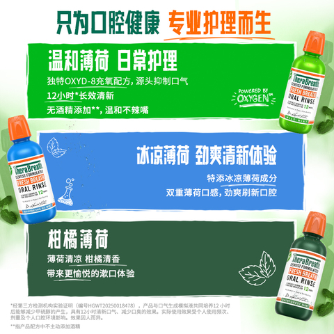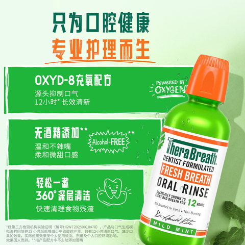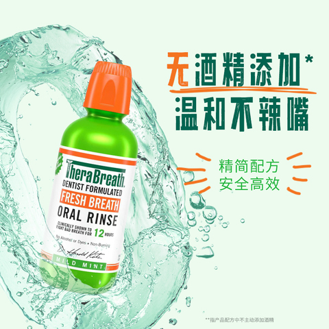 【专属推荐】TheraBreath凯斯博士漱口水无酒精清新口气男女生。