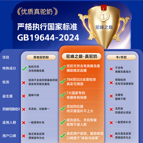 【淘金币14.48,最终到手84.52】骆驼奶粉正宗益生菌中老年新鲜驼乳粉成人,超赞~