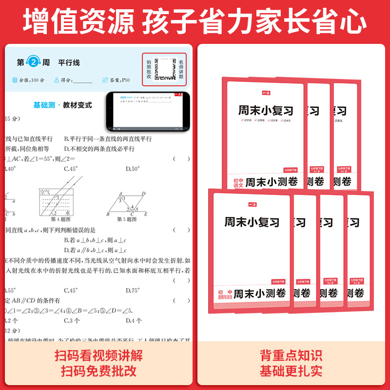 送小复习!一本初中周末小测卷七年级下册科目任选,同步课堂进度,新考法易错题过关,一周一测,巩固每周所学!月考期中期末冲刺卷,考前查漏补缺拿高分!