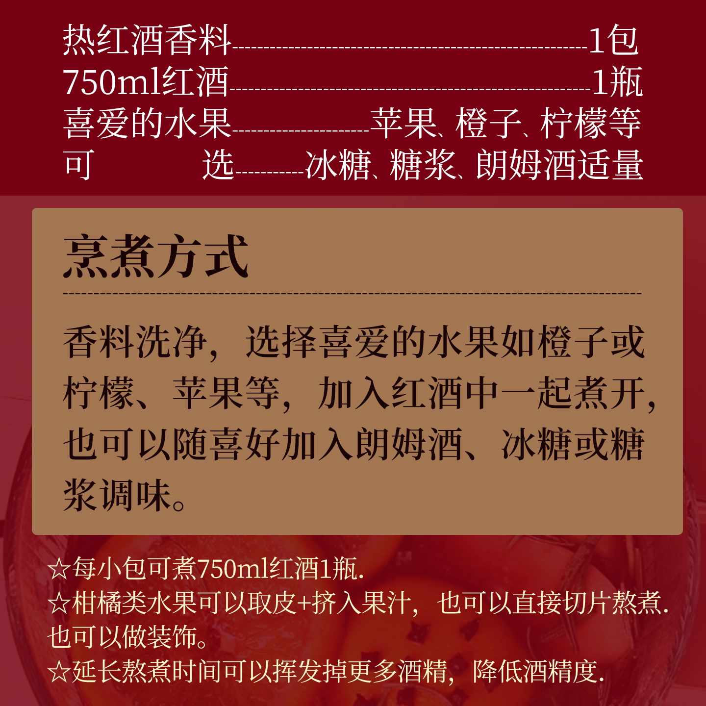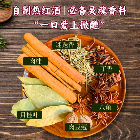 【原价16.8券后到手14.8】精选原料,完整保留自然香气-好材料成就好口感,激发红酒的深层风味;寒风里的约定,从一杯热红酒开始。每一口都带给你一场优雅细腻又奔放的味觉之旅;一包香料,就是热红酒的完整风味公式,让肉桂、八角与橙香,在您的锅中奏响冬日圆舞曲。