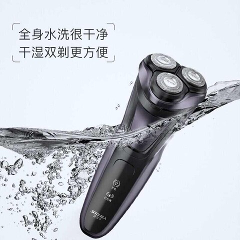 超人电动剃须刀,三刀头设计,贴合面部轮廓,剃净无死角。全身水洗,充电式使用便捷。男士必备,清爽每一天!