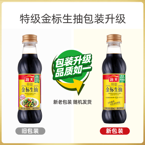 海天特级金标生抽500ml,家用小瓶装,炒菜提鲜、凉拌点蘸都适合!