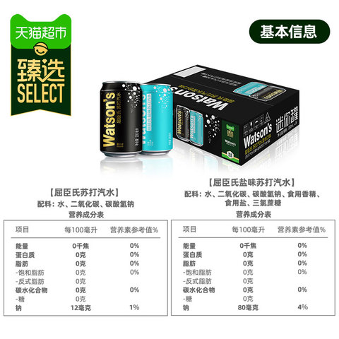 【臻选】臻选屈臣氏苏打水无糖汽水200ml*35罐(30原味+5盐味)