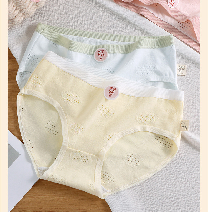 舒适亲肤,A类棉日系风,女士内裤首.选!纯棉质地,婴儿般触感,透气不闷热。抗菌裆部设计,健康每一天。中腰设计,时尚又显瘦。精致细节,展现你的少女心。