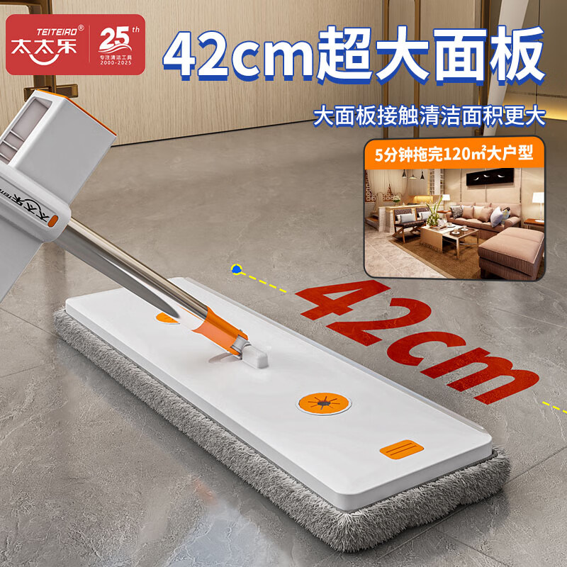 太太乐免手洗2024新款平板拖把家用一拖净吸水懒人地拖布拖地神器 38cm面板-4布-除螨/可加消毒液