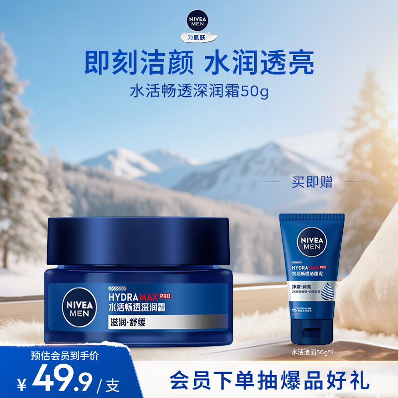 妮维雅(NIVEA)男士【深层锁水】补水保湿水活畅透深润霜50g干皮润肤面霜