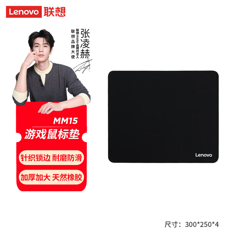联想(Lenovo)MM15游戏电竞锁边鼠标垫 办公鼠标垫 布垫细面 可水洗 电竞鼠标垫 加厚 中号(300*250*4mm)