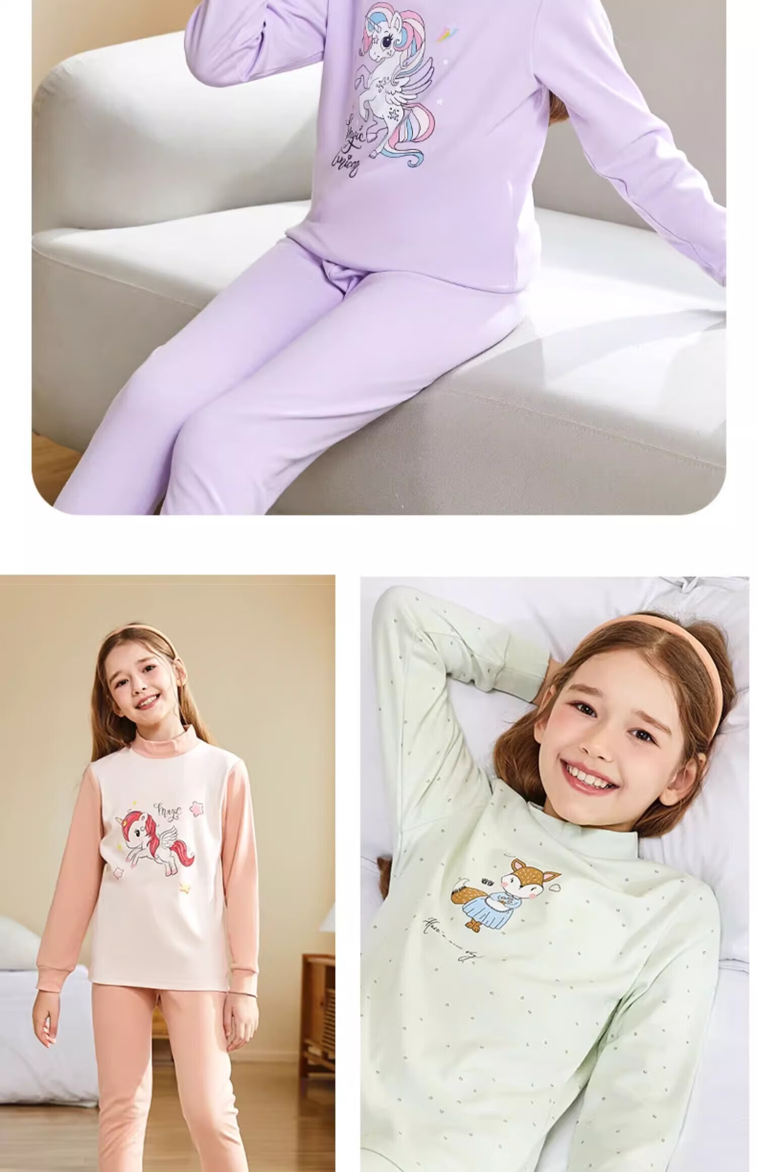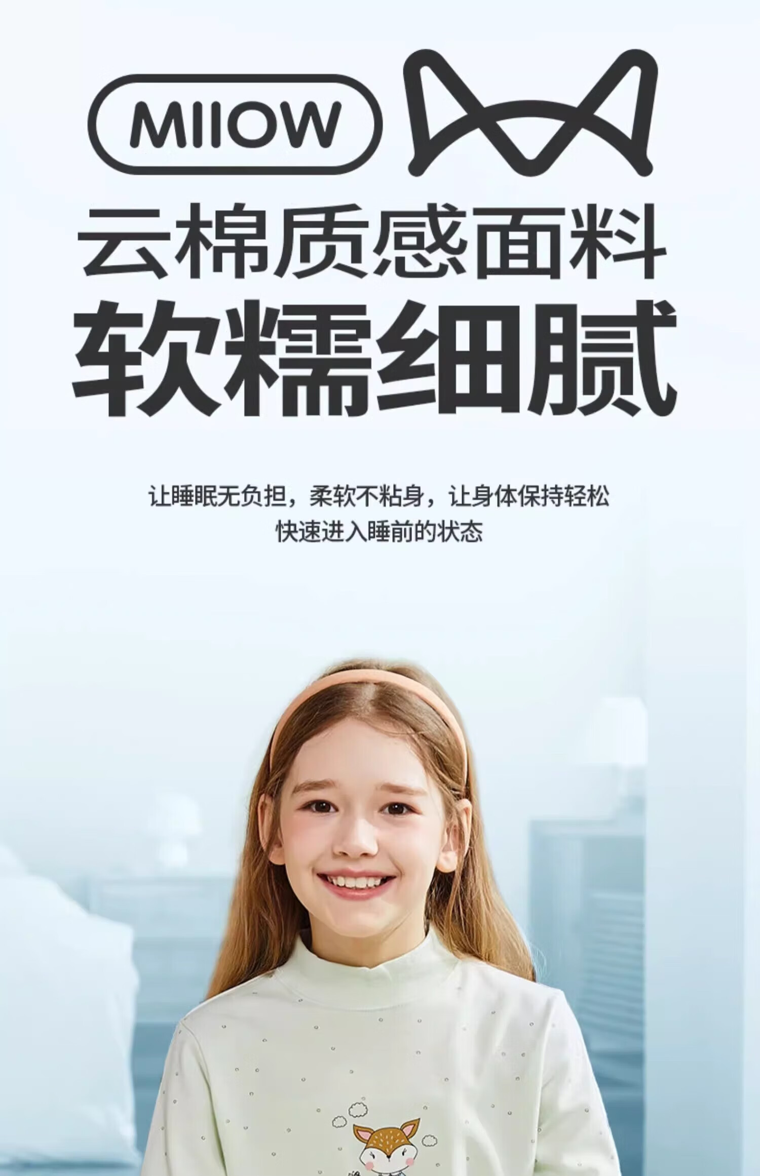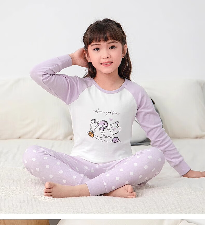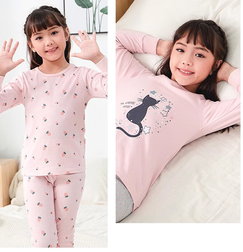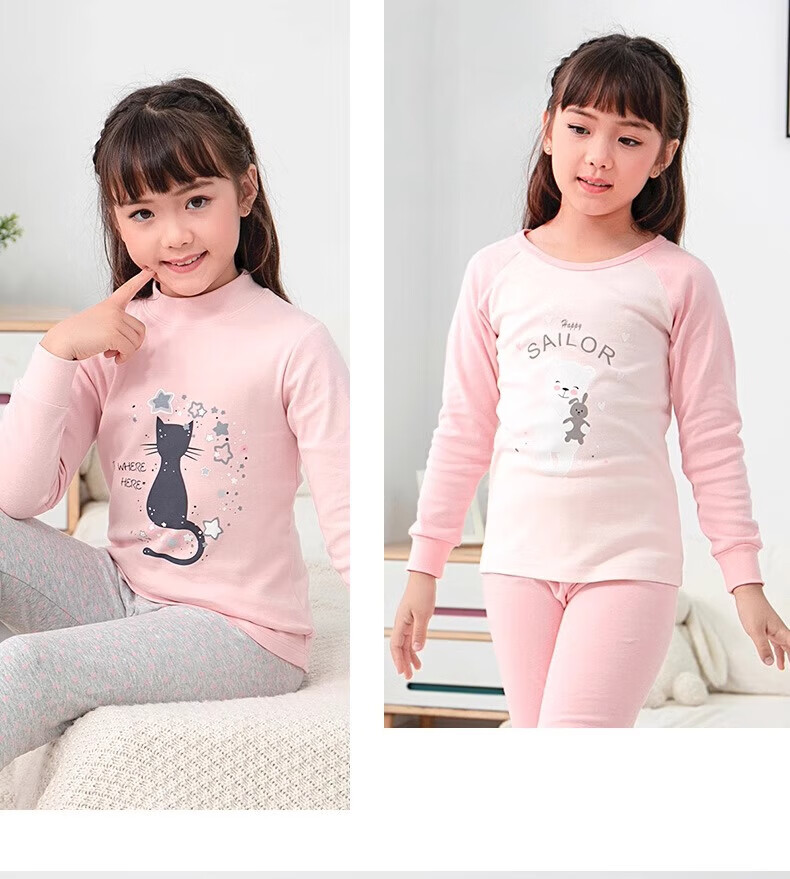 猫人(MiiOW)女童纯棉秋衣秋裤儿童保暖内衣套装全棉中大童棉毛衫春秋家居服 可爱小猪 圆领 120 建议体重30-39斤