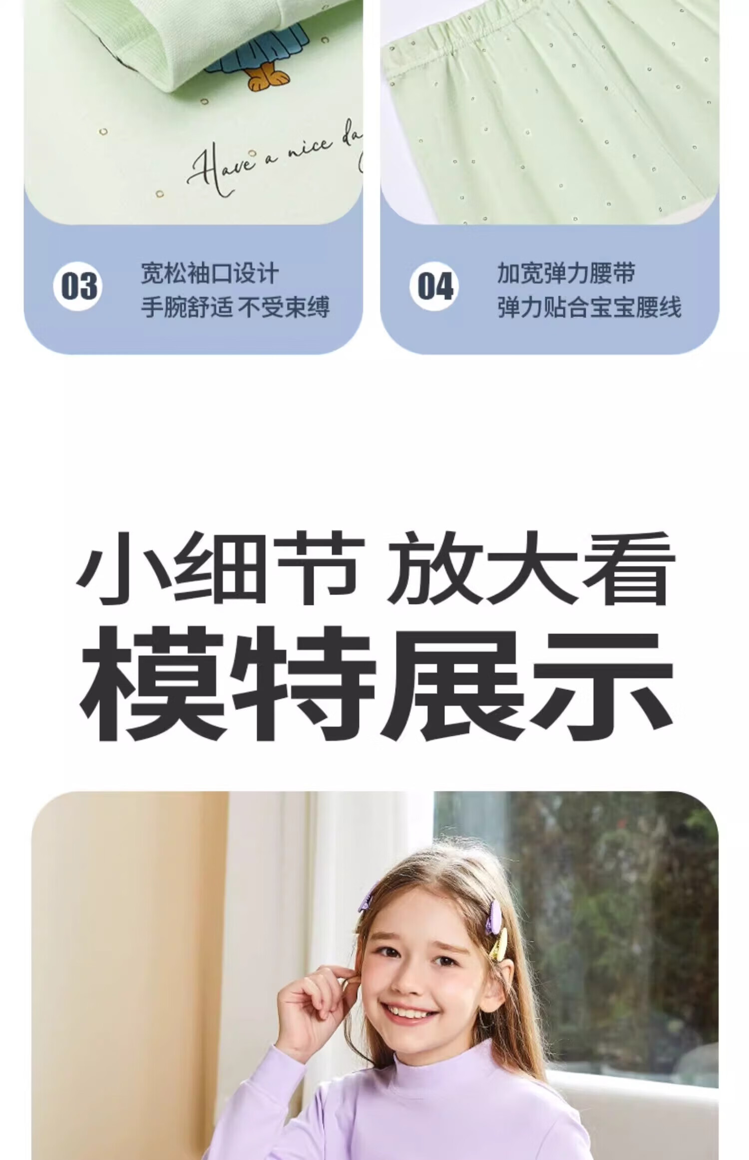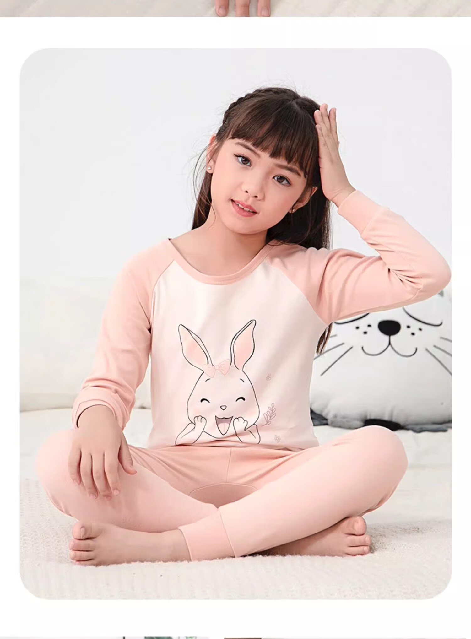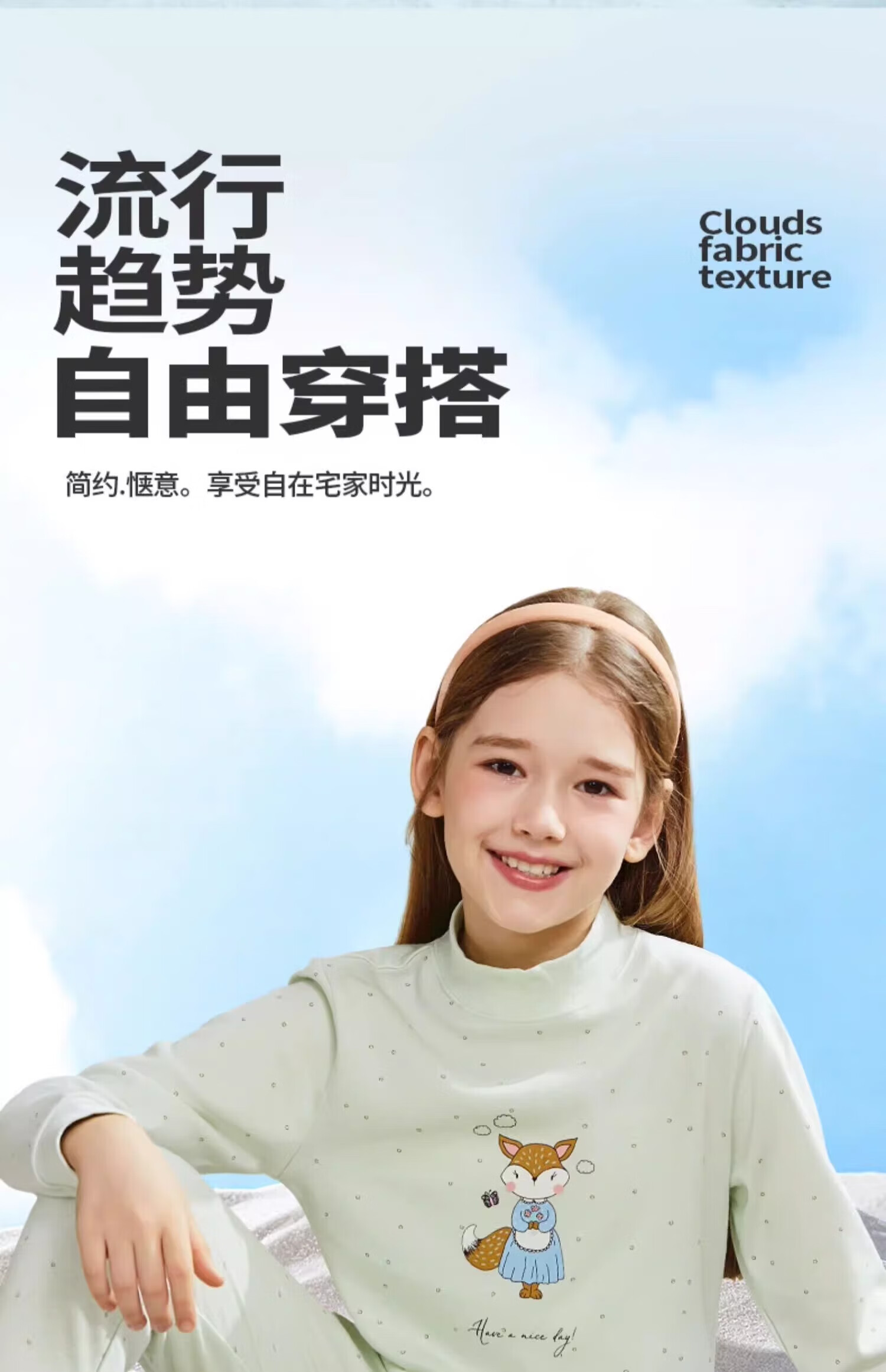猫人(MiiOW)女童纯棉秋衣秋裤儿童保暖内衣套装全棉中大童棉毛衫春秋家居服 可爱小猪 圆领 120 建议体重30-39斤