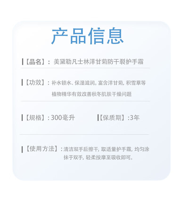美黛勒洋甘菊护手霜秋冬滋润补水保湿防干裂润护洋甘菊护手霜手膜 C洋甘菊护手霜300ml1瓶