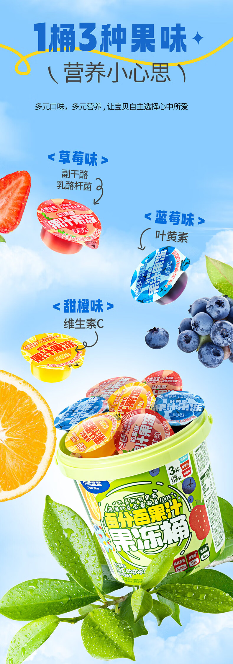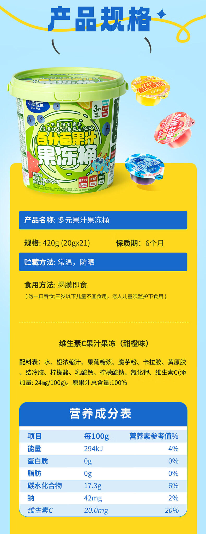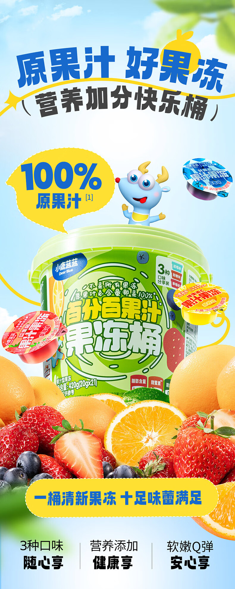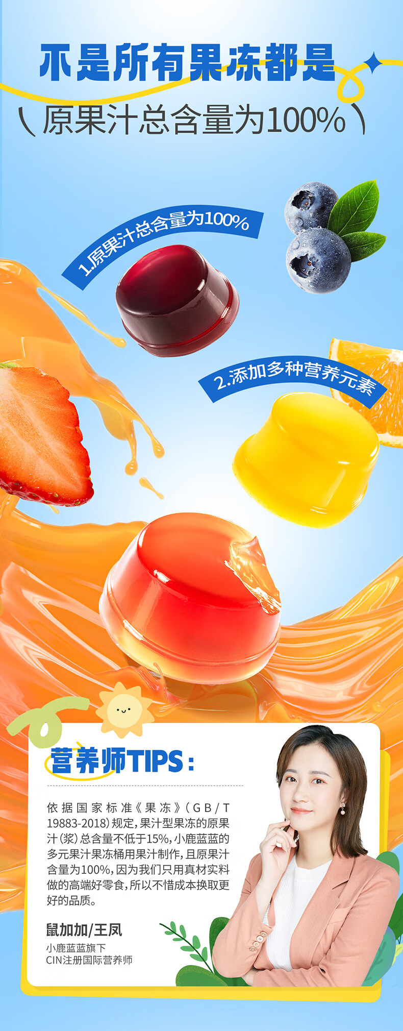 小鹿蓝蓝维C多元果汁果冻420g 宝宝儿童零食百分百果汁果冻约21粒