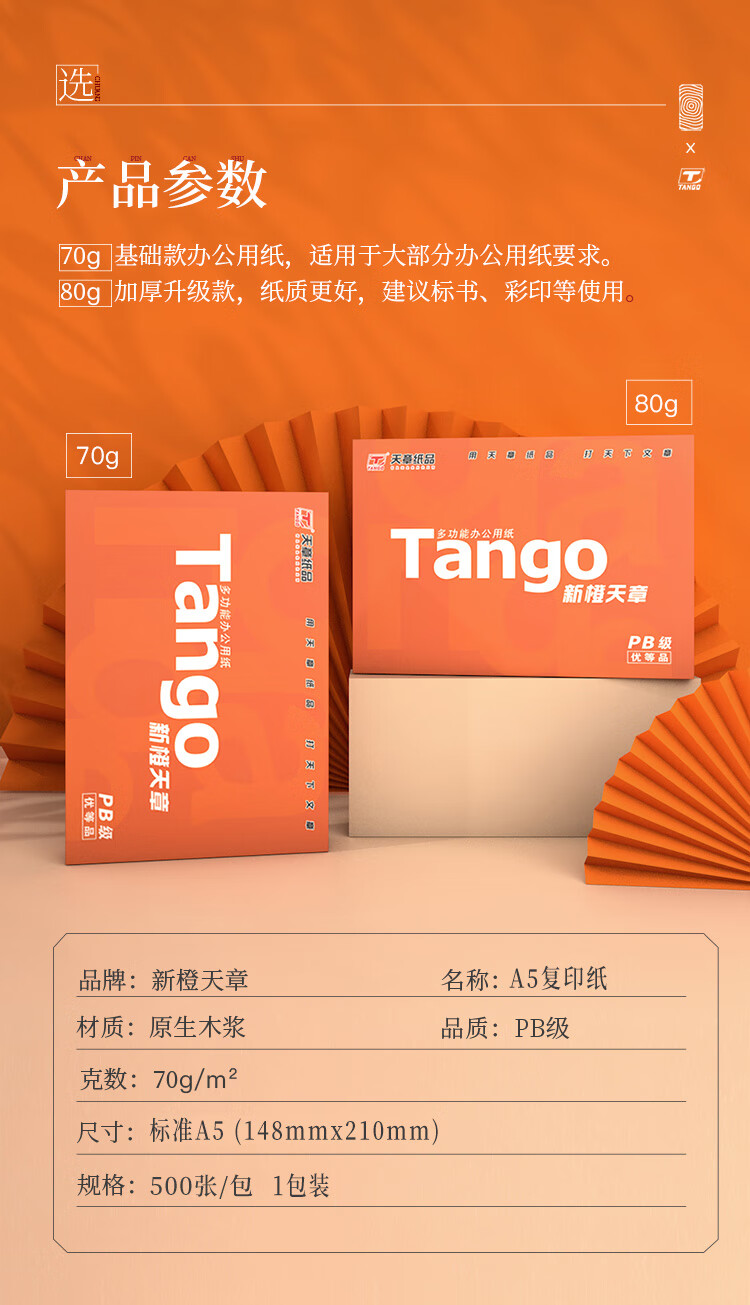 天章新橙天章A5打印纸70g500张一包 电子发票 处方笺空白复印纸学生草稿纸(148*210mm)巴掌大尺寸