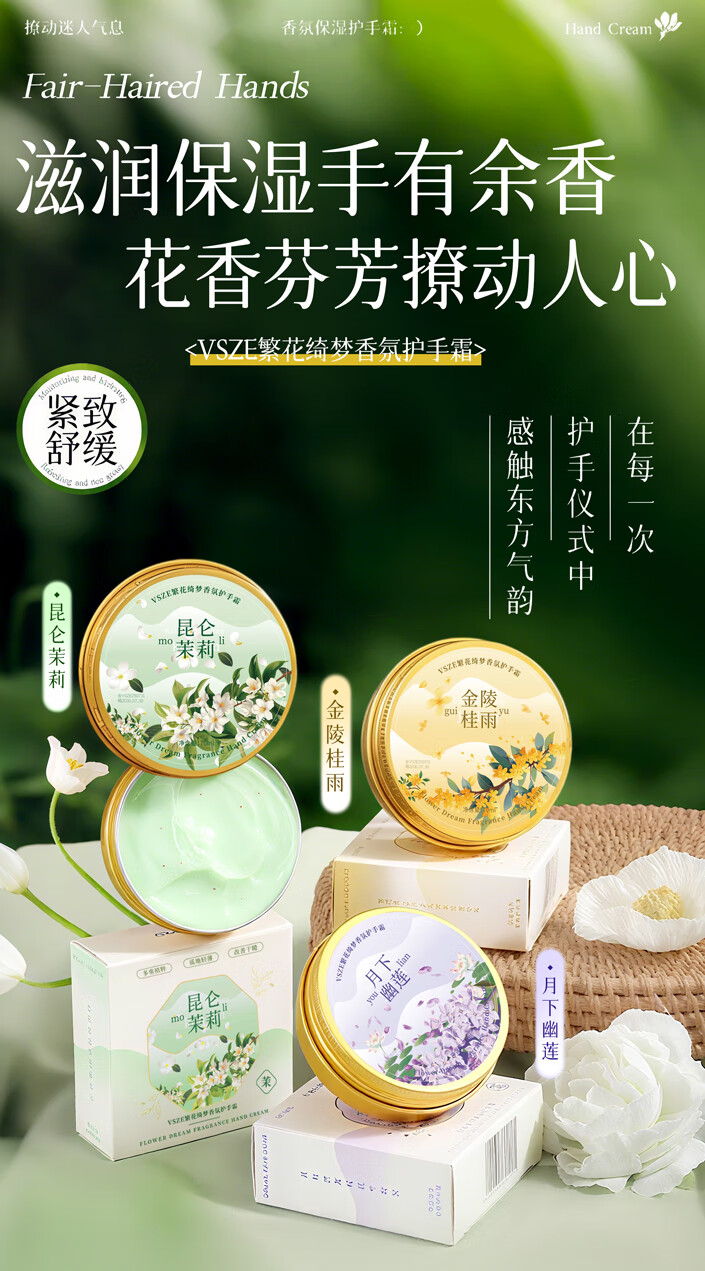 LIFUSHA繁花香氛护手霜深层滋润保湿护肤霜防干裂改善粗糙清爽护手霜 【金陵桂雨】繁花护手霜70g ×2盒