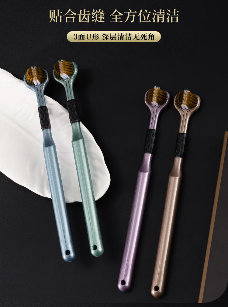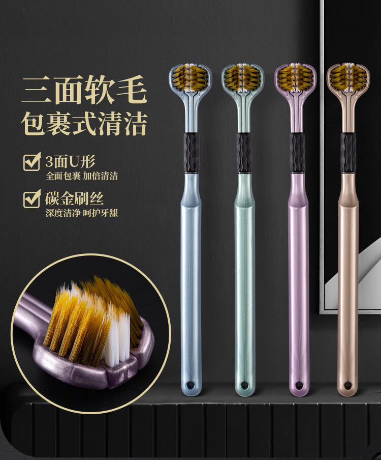 COBQB三面牙刷碳金软毛U形牙刷家用装送礼口腔清洁 软毛 10支 三面刷/-1套