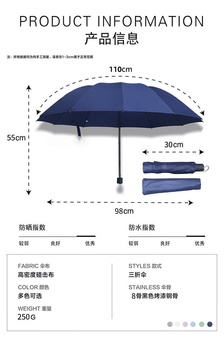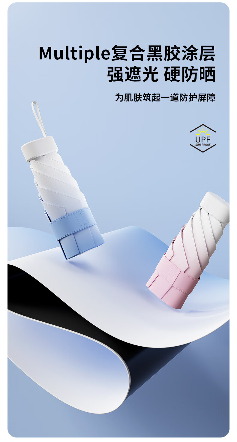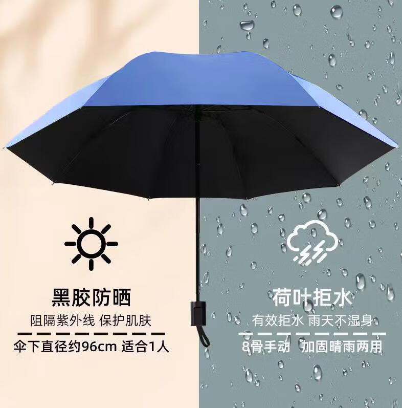 印象城雨伞遮阳伞晴雨两用折叠轻巧便携防晒防紫外线手动男女学生太阳伞 【到手两把】8骨黑色