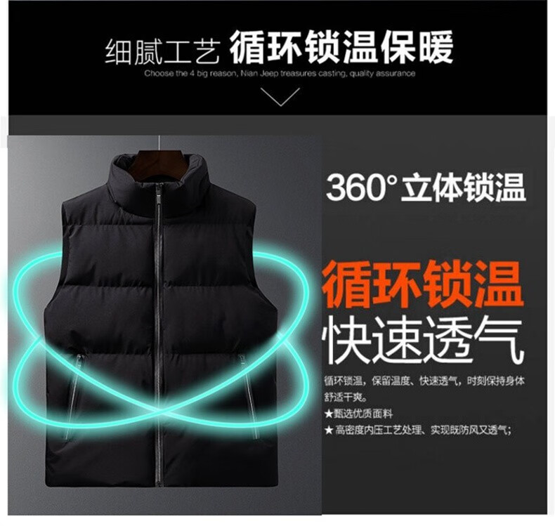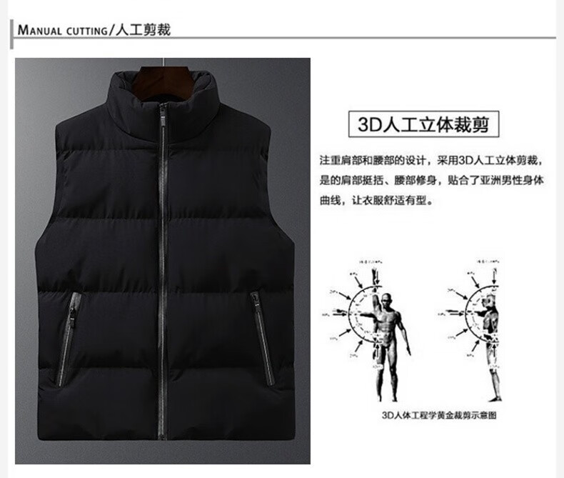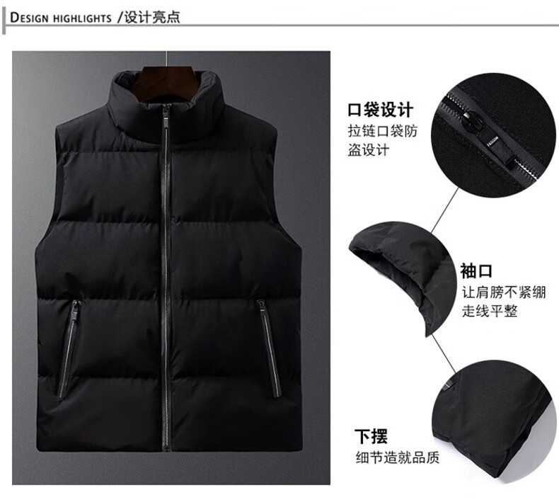 真维斯户外运动马甲男外套春秋季冬天坎肩无袖棉衣上衣服新款纯色立领上衣 灰色 M