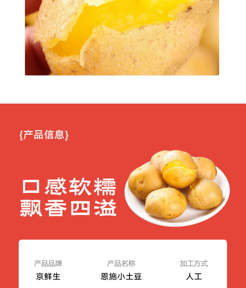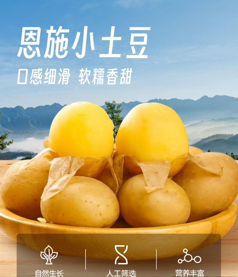 京鲜生恩施小土豆净重3斤 单果30-100g新鲜黄心马铃薯洋芋源头直发