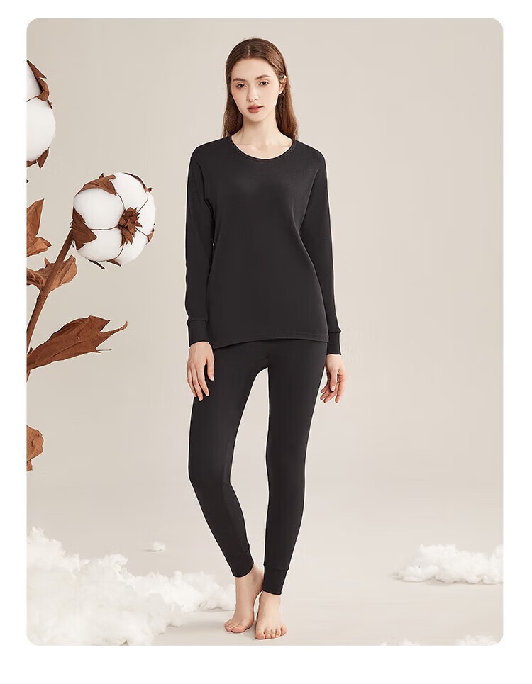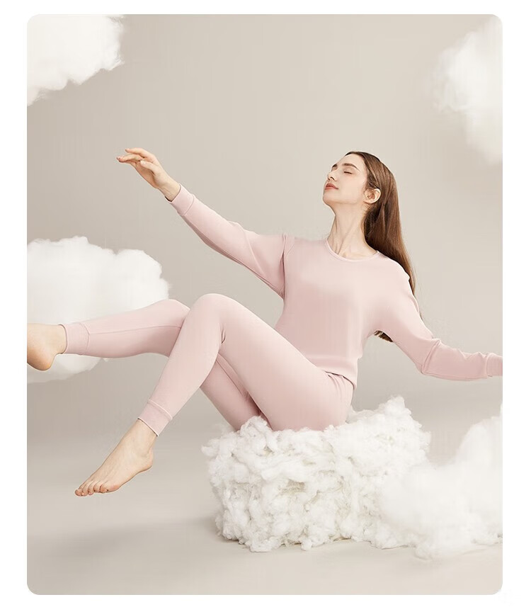 红豆(Hodo) 秋冬内衣秋衣秋裤纯棉套装纯色低圆领打底衫裤 女款深雅粉 M 165/90