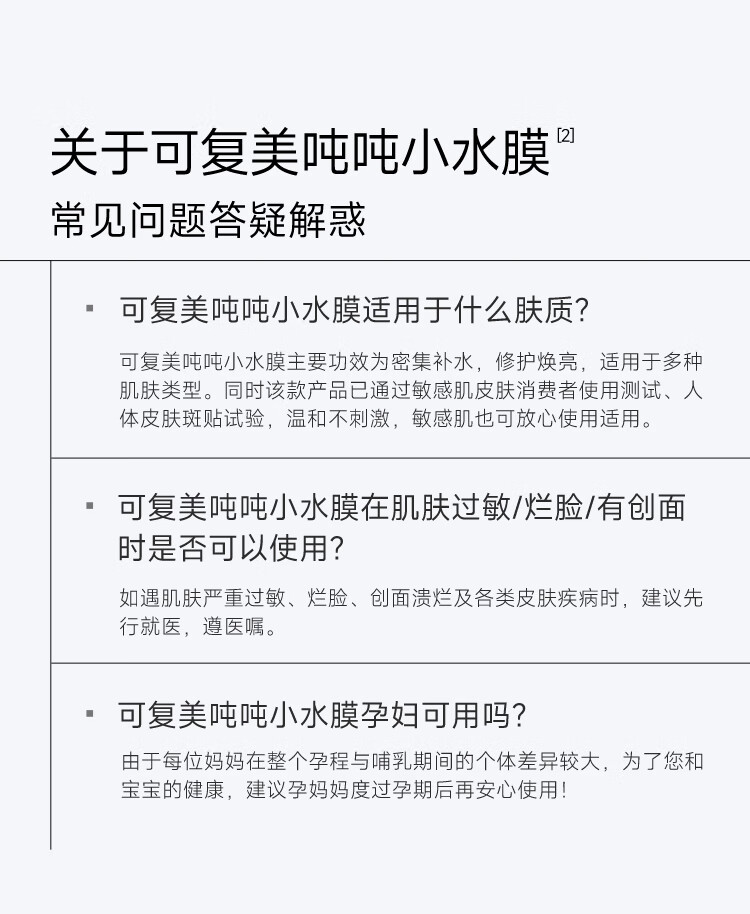 可复美吨吨精华小水膜补水保湿护肤修护适用敏感皮肤贴片面膜J 吨吨精华小水膜2片