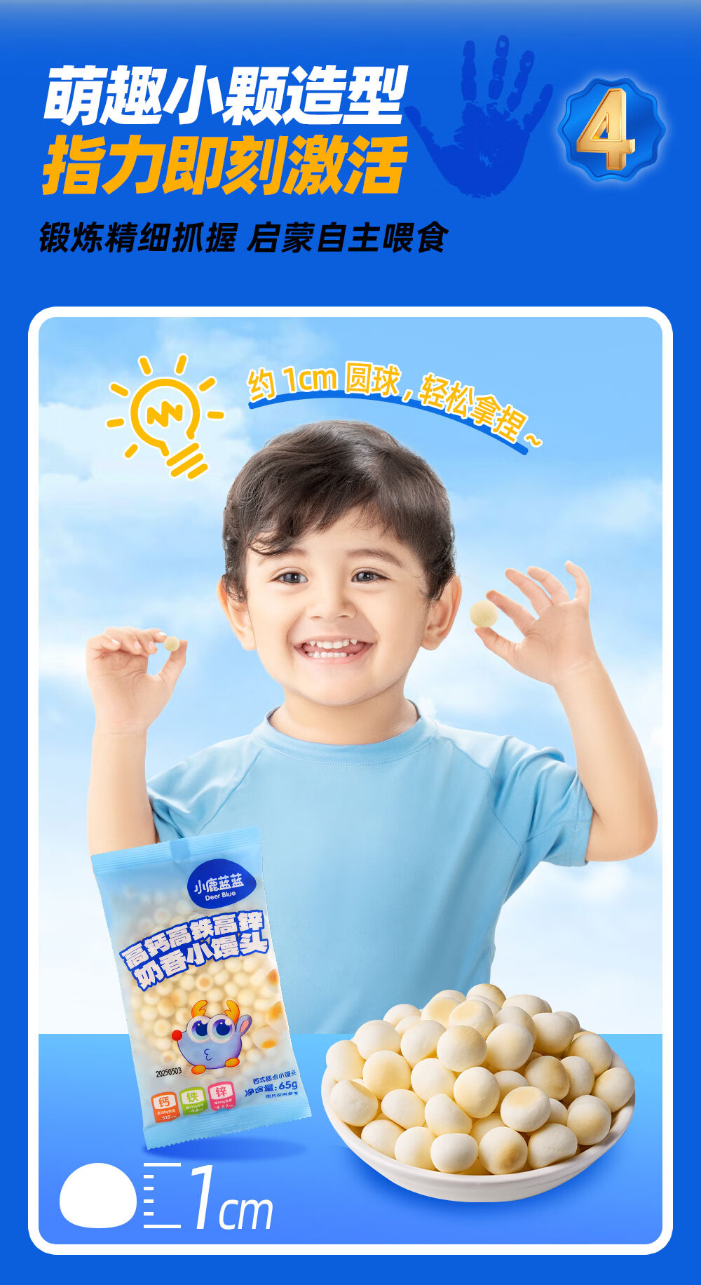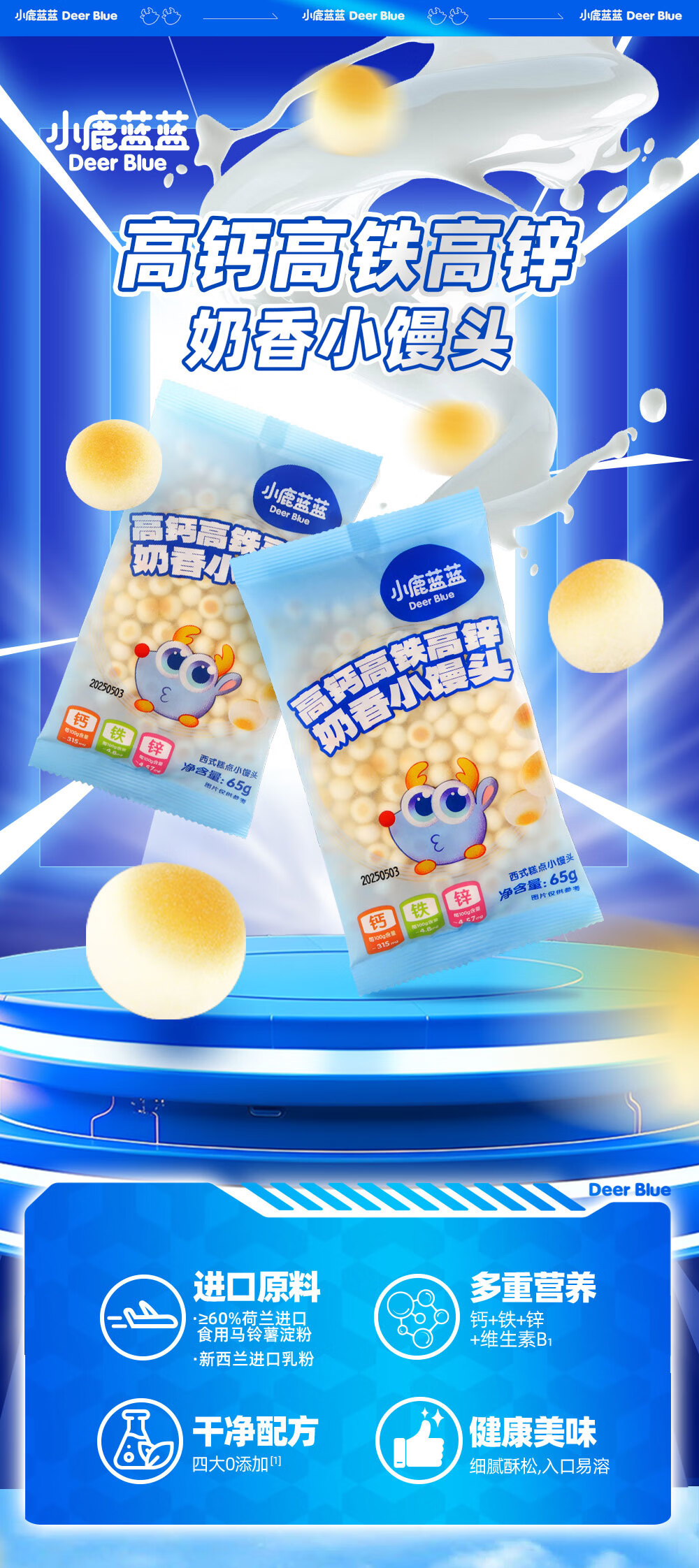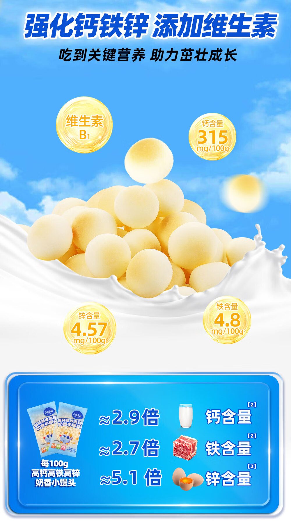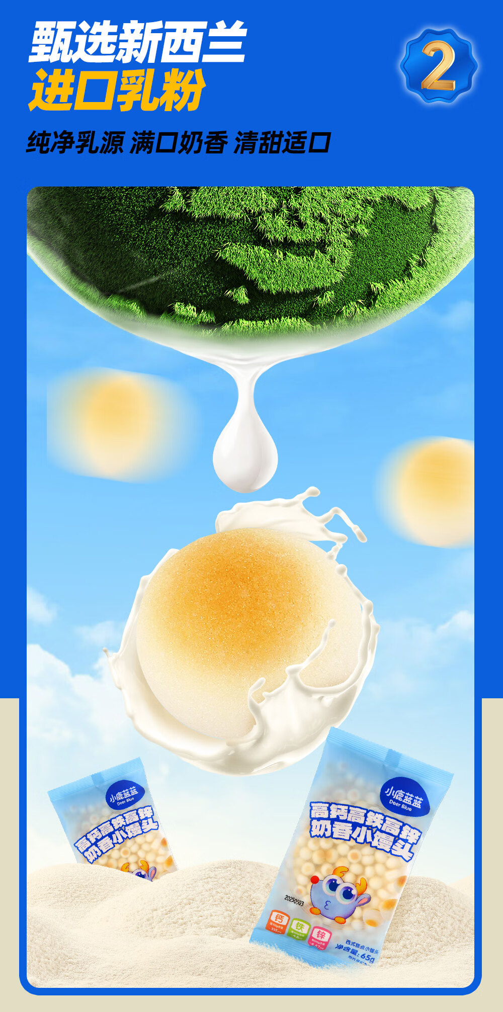 小鹿蓝蓝高钙高铁高锌奶香小馒头宝宝零食儿童零食小馒头3袋组合装195g