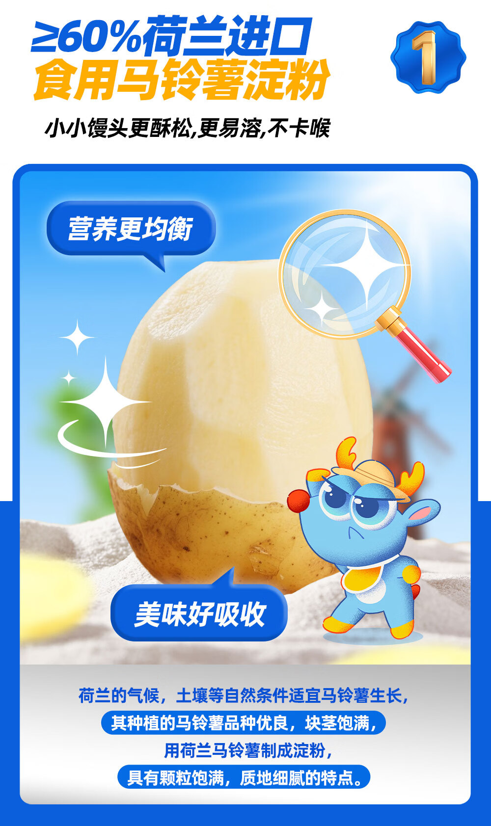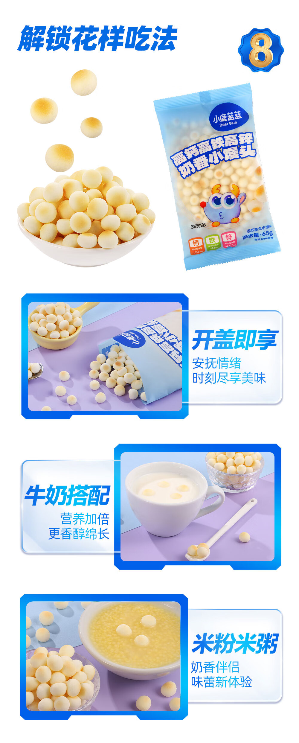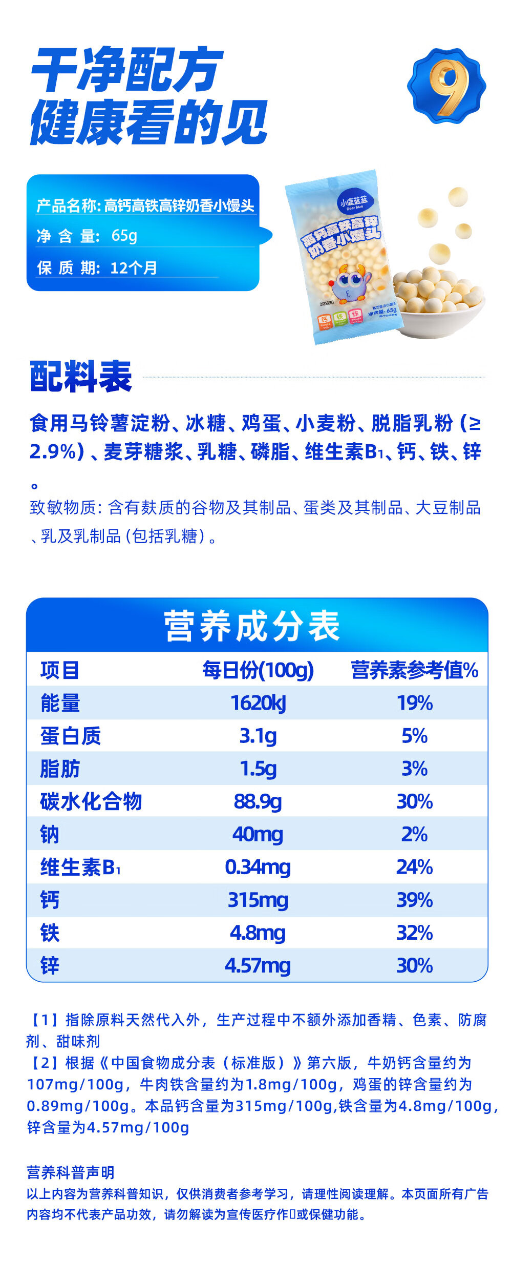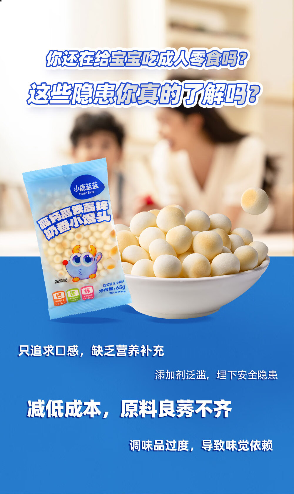 小鹿蓝蓝高钙高铁高锌奶香小馒头宝宝零食儿童零食小馒头3袋组合装195g