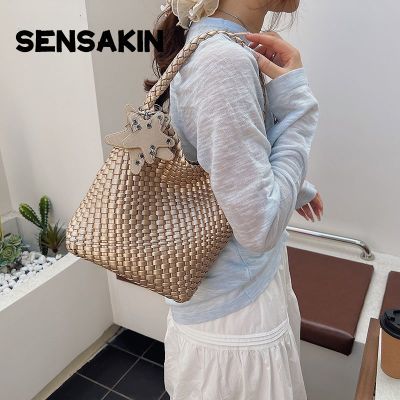 [SENSAKIN]香槟色编织托特包包女大容量大包高级感手提单肩水桶包【2月26日发完】