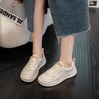 透气真皮头层牛皮小白鞋2025平底新款厚底休闲百搭运动板鞋