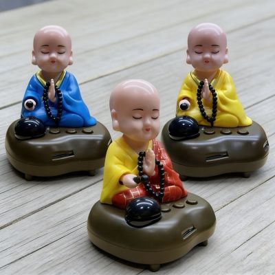 充电小和尚汽车摆件车载太阳能敲木鱼小沙弥创意车内车用装饰用品【3月5日发完】
