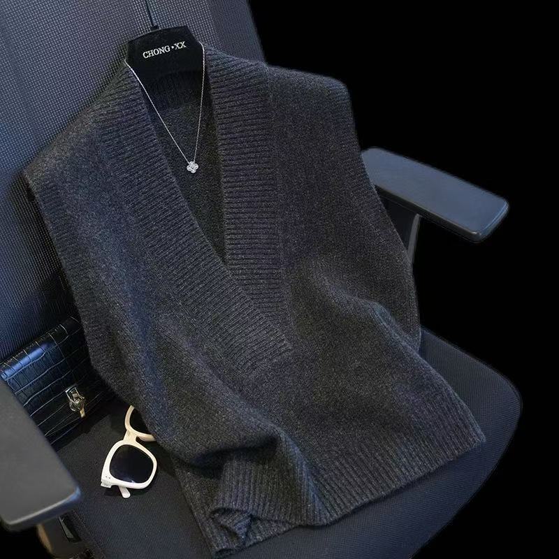 大V领针织马甲女宽松显瘦纯色内搭外穿毛衣背心洋气秋冬新款坎肩