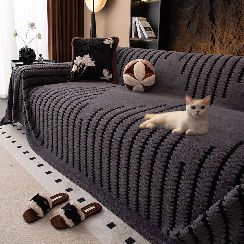 暖意绒绒云感万能全盖沙发盖四季款防滑防猫抓高级感提花毛绒套罩