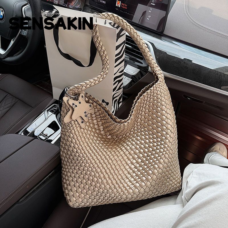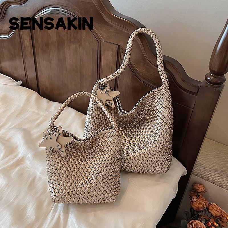 SENSAKIN香槟色编织托特包包女大容量大包高级感手提单肩水桶包【2月26日发完】