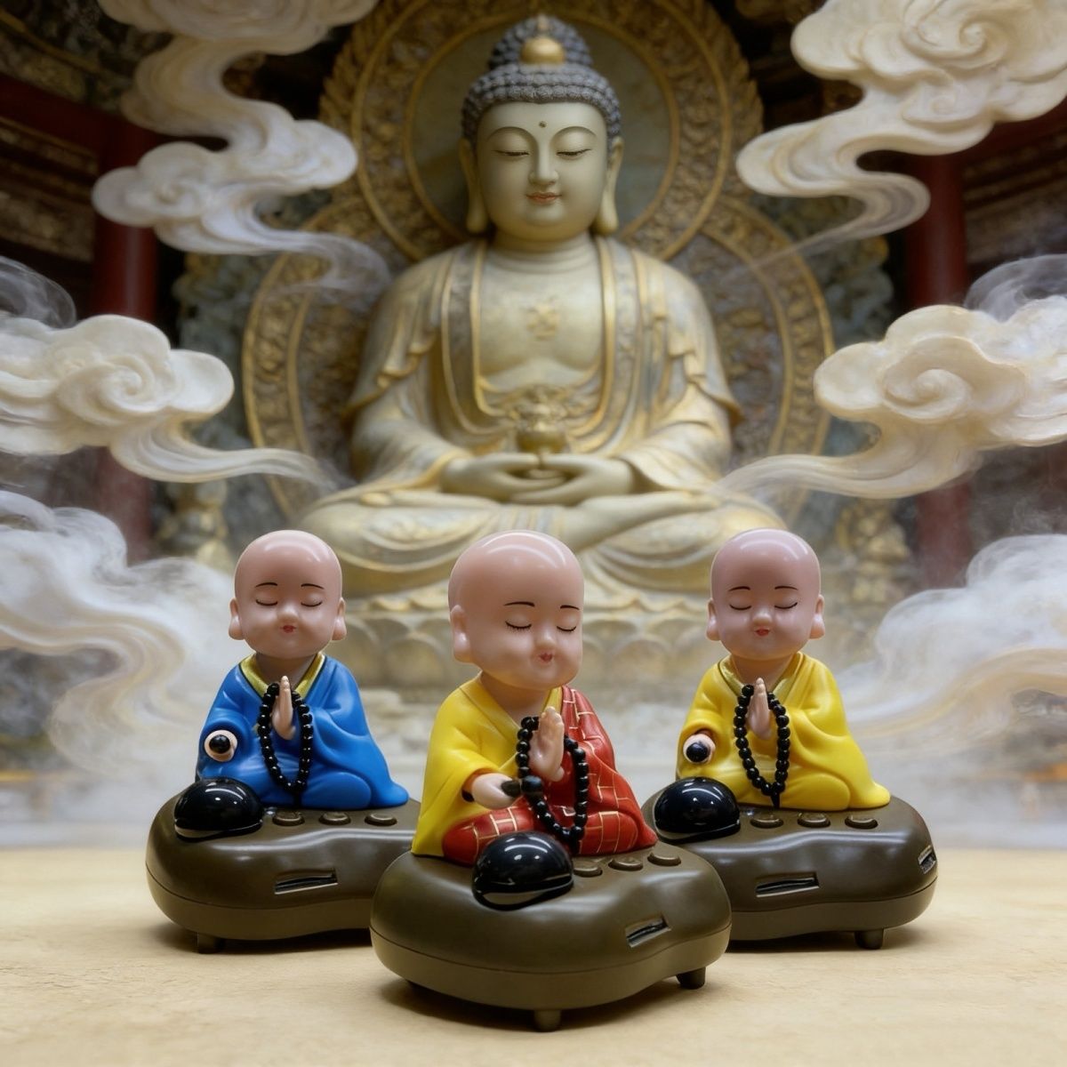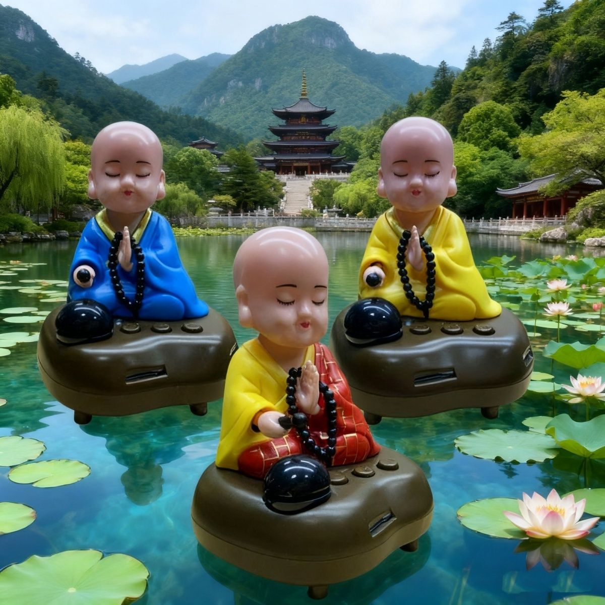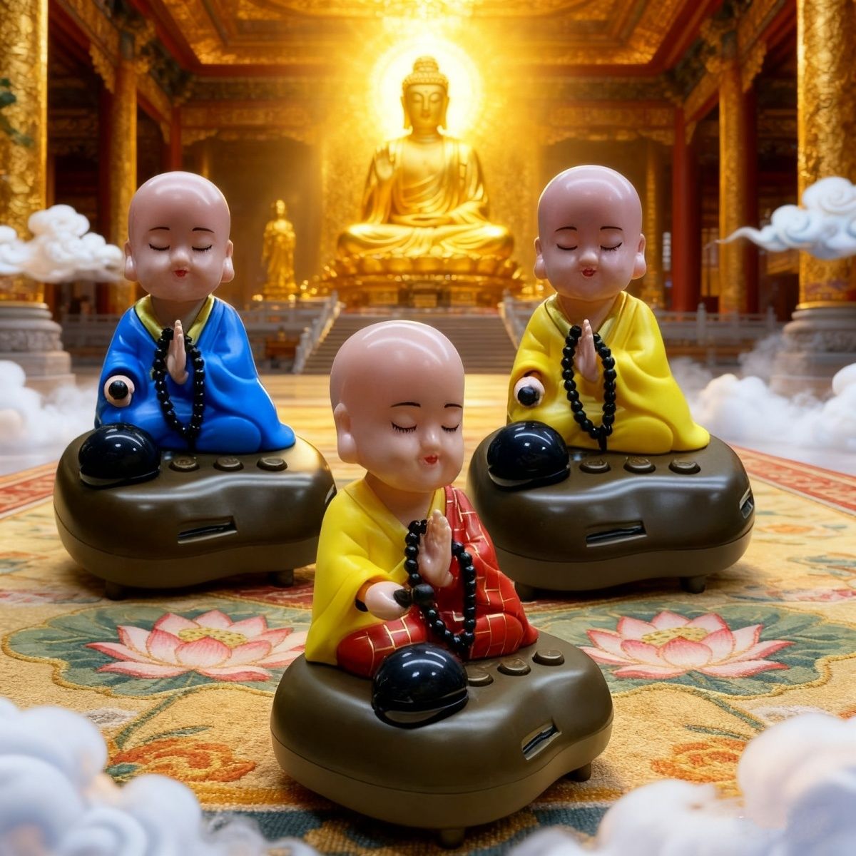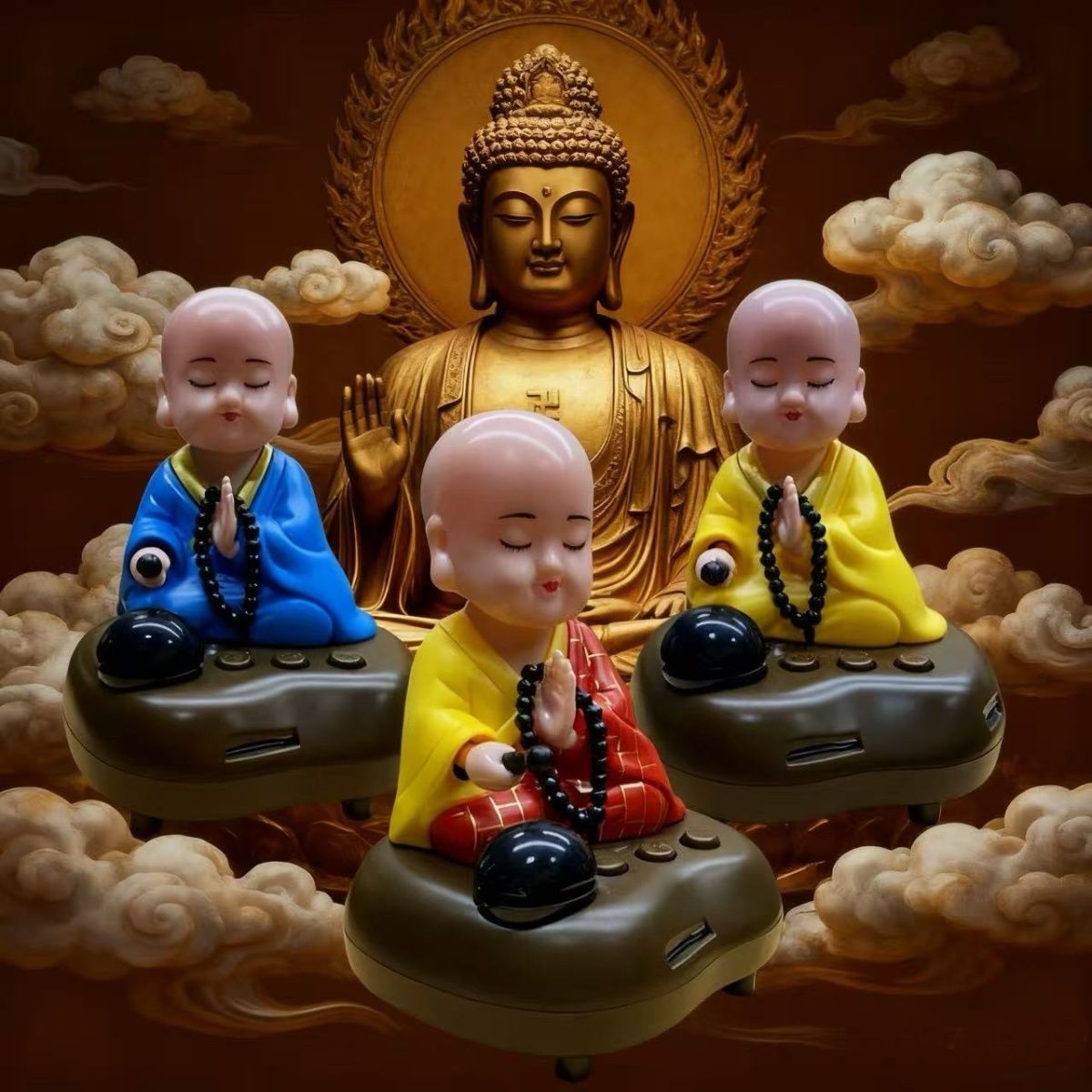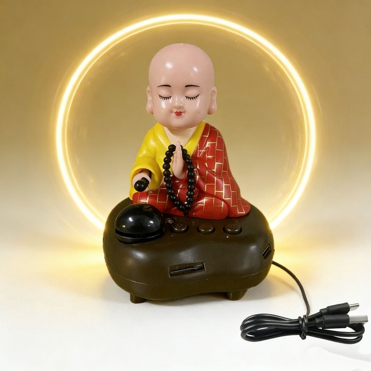 充电小和尚汽车摆件车载太阳能敲木鱼小沙弥创意车内车用装饰用品【3月5日发完】