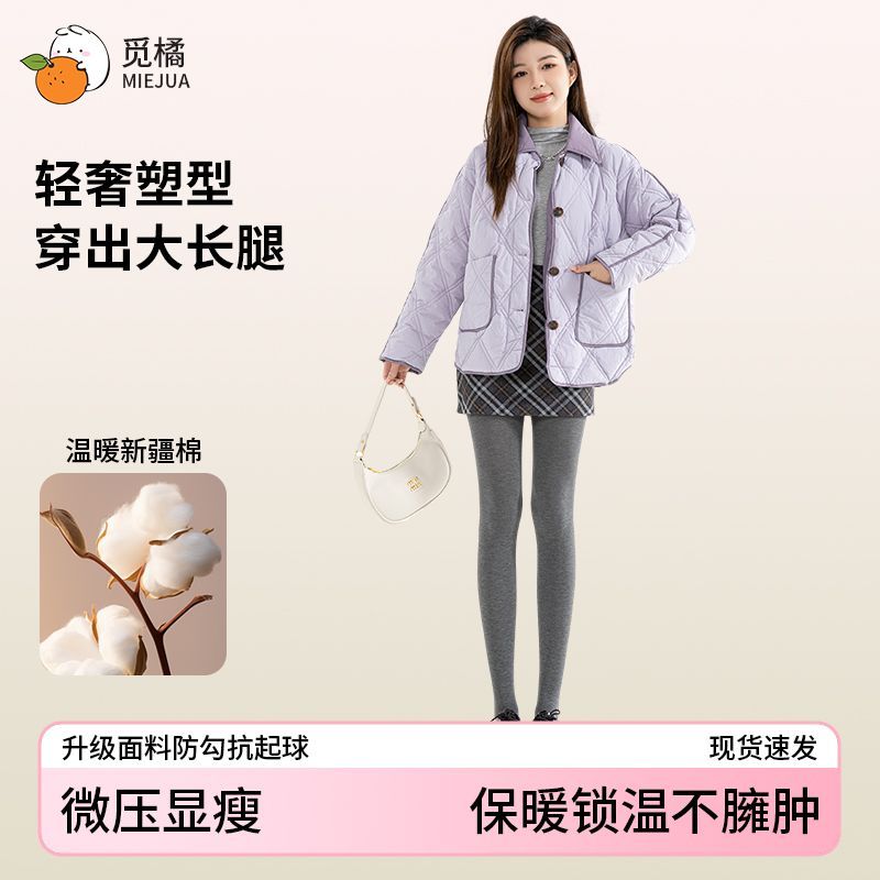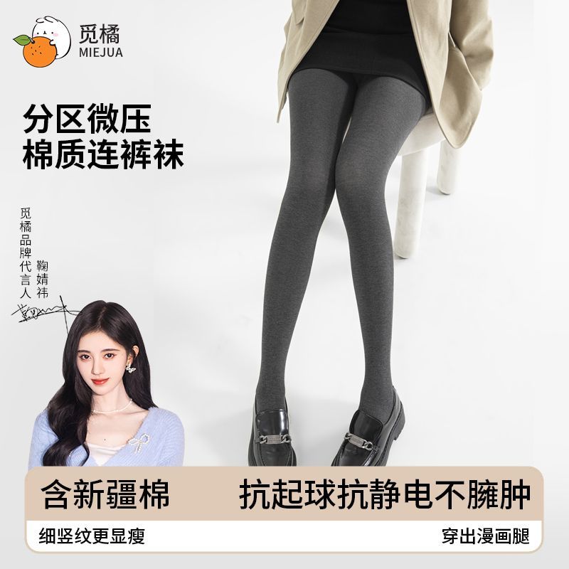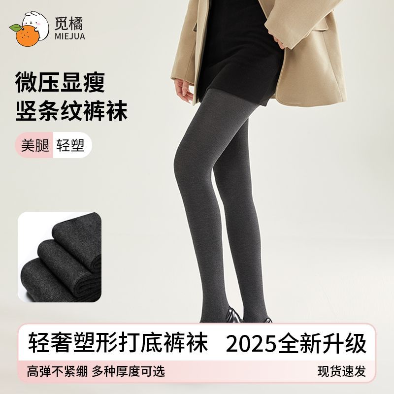 【鞠婧祎同款】觅橘25新棉竖条微压连裤袜女秋冬miu系显瘦打底裤