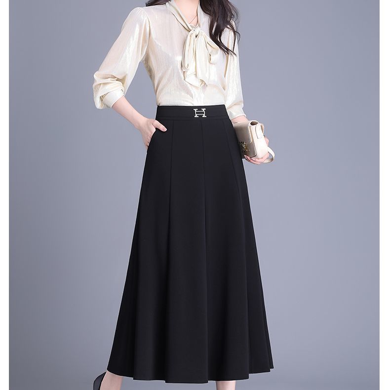 垂坠感a字裙半身裙女春秋季2025新款高腰显瘦八片大摆伞裙长裙