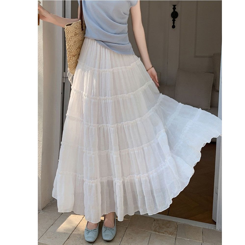 2025春夏新款修身垂感大摆裙百搭裙蛋糕裙超仙天丝半身裙气质长裙