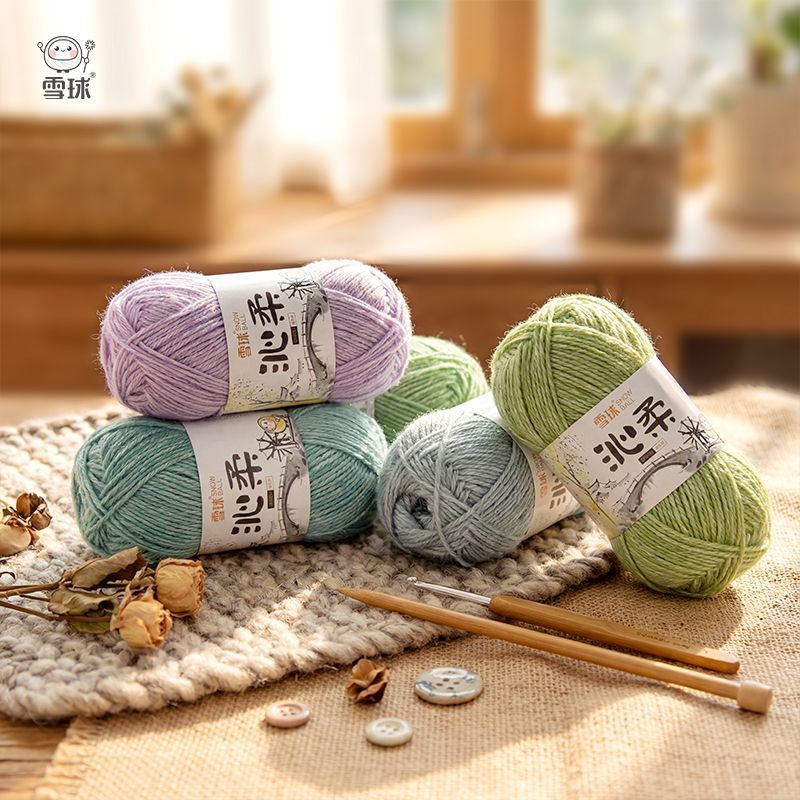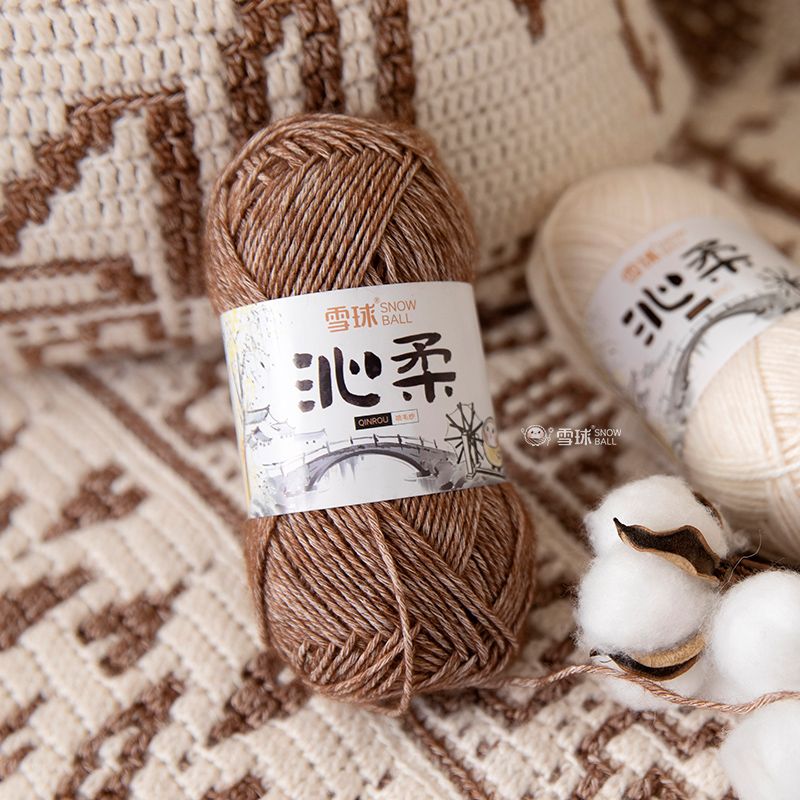 雪球正品沁柔喷毛纱老工艺宝宝婴儿手编围脖细毛diy手工围巾棉线