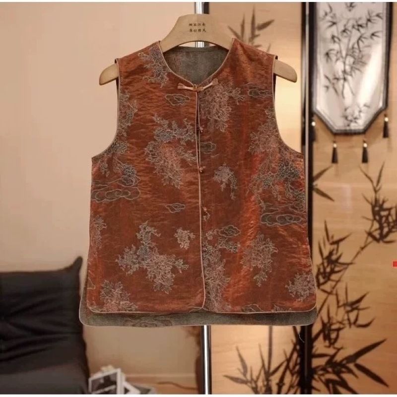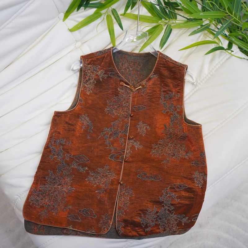 1602新中式风双面穿提花马甲女圆领无袖背心老料浮光锦马夹【15天内发货】