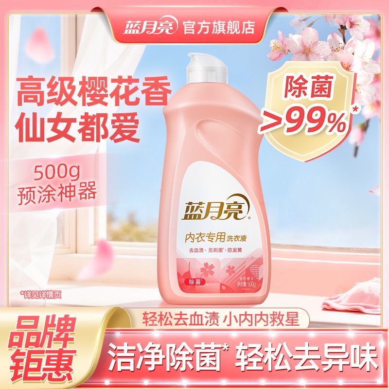 蓝月亮内衣洗衣液500g翻盖洗内裤除菌去血渍小瓶装精准预涂