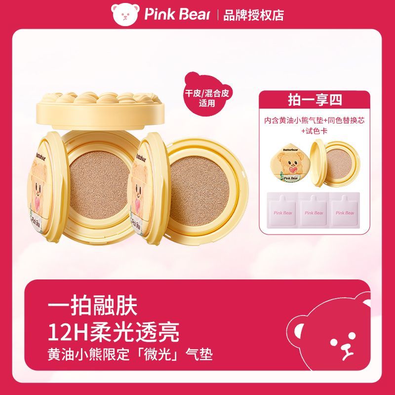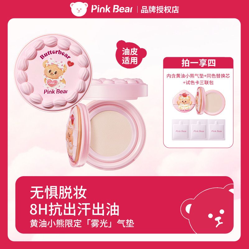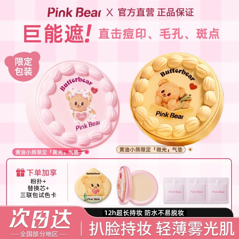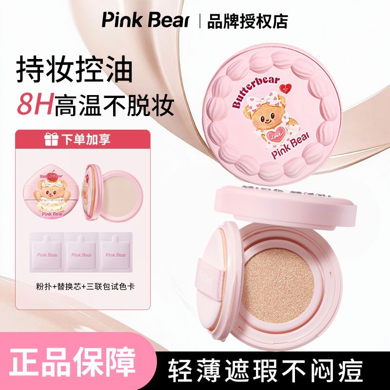 小熊联名】PINKBEAR皮可熊干皮油皮气垫遮瑕持妆控油不焖痘学生