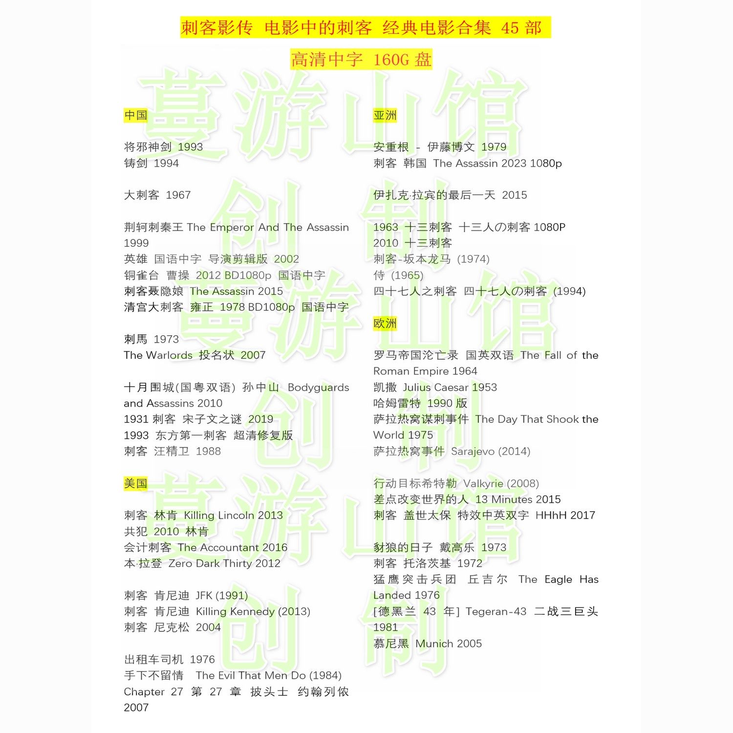 刺客影传 电影中的刺客 经典电影合集 45部 高清中字 160G 盘