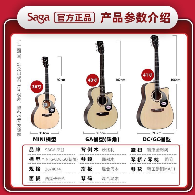 大树音乐屋SAGA sf600萨伽初学入门民谣男女生原声电箱木吉他