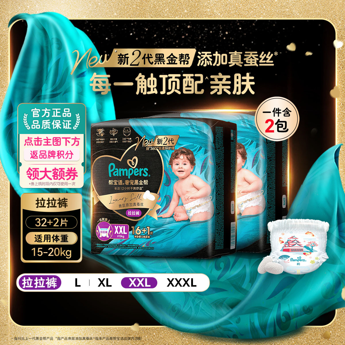 帮宝适 【超值2包】黑金帮拉拉裤尿不湿L-3XL超薄透气夏季婴儿尿裤